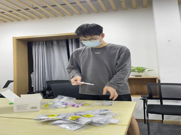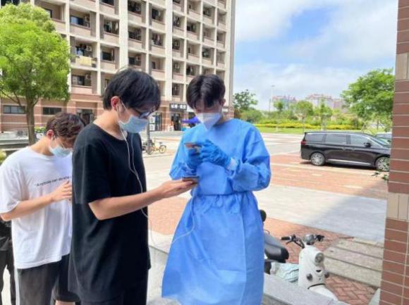 核酸检测对于学校疫情防控和学生返乡都至关重要。全校的核酸检测需要大量的志愿者协助,邸亚伟、徐涛、韩少杰、田文涛等同志都参与了协助医生进行核酸检测的任务,奔走于各个围合之间。赵祥雨和韩少杰同志还担任寝室围合和楼层志愿者,负责学校物资发放、抗原试剂分发和组织核酸检测等。