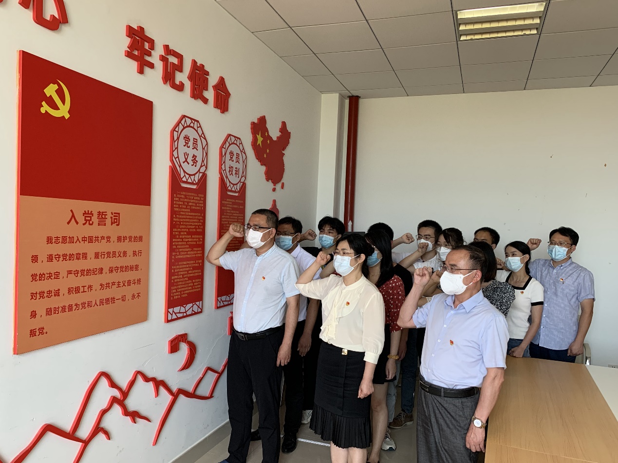 最后,与会党员佩戴党员徽章,在学院党委书记刘俊同志的带领下,共同举起右拳,面向鲜红的党旗庄严宣誓。(供稿: 电气学院 张鑫 冯雯雯)