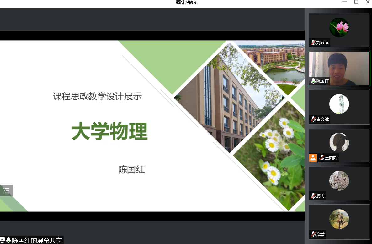 陈国红老师从落实课程要求和专业人才毕业要求出发,介绍了《大学物理》如何通过问题导向、案例导入的教学方法将“求实精神”“创新意识”“科学美感”等思政要素融入课堂教学的有益探索。