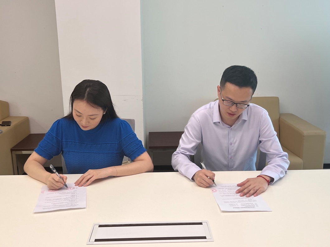 最后双方签订了实习基地协议书,并在园区正式挂牌成立上海电机学院外国语学院实训基地。