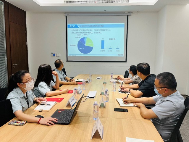 上海和辉光电有限公司人事保卫部副部长冷芳谷、招聘培训科副科长吴嘉骏、招聘组副组长丁亚妹对学校调研人员表示热烈欢迎,并带领参观极具特色的公司展厅与洁净产房,全面介绍公司发展情况。招聘组副组长丁亚妹就我校应届毕业生招聘任用情况、人力资源政策、人力发展培养策略等方面进行了详细介绍。