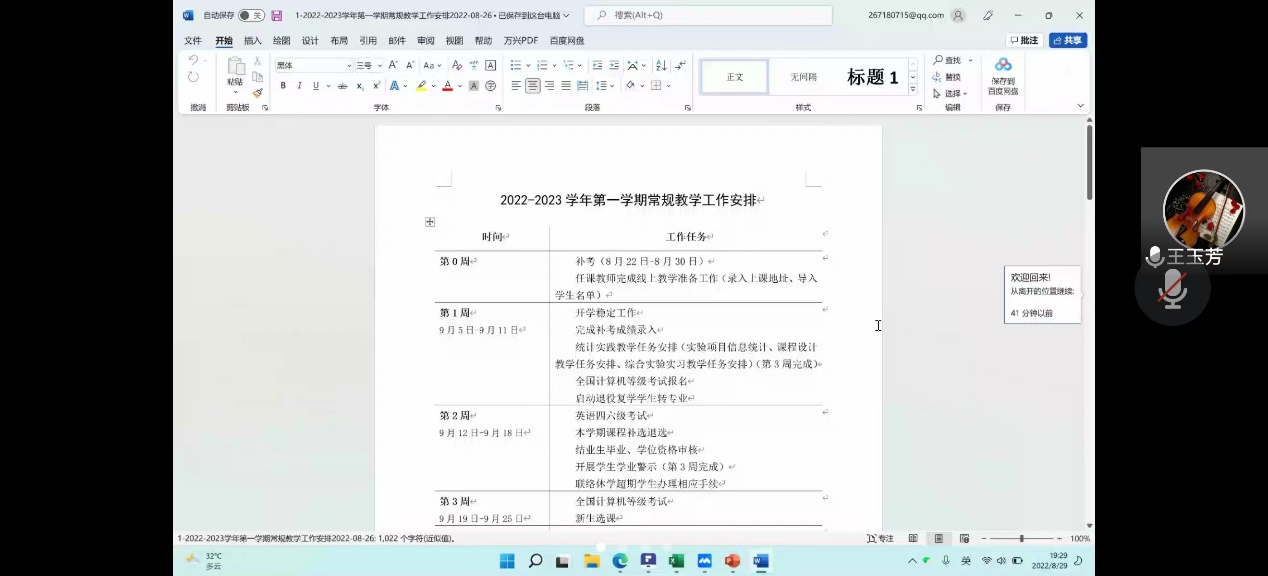 王玉芳传达了学校关于新学期开学常规教学工作安排和做好教学稳定工作的相关要求,提醒各班早做准备,确保学生提前清楚本学期各项教学工作时间节点,并就班级管理中线上教学服务、教学信息传达、重点学生帮扶等提出切实可行的建议与要求。