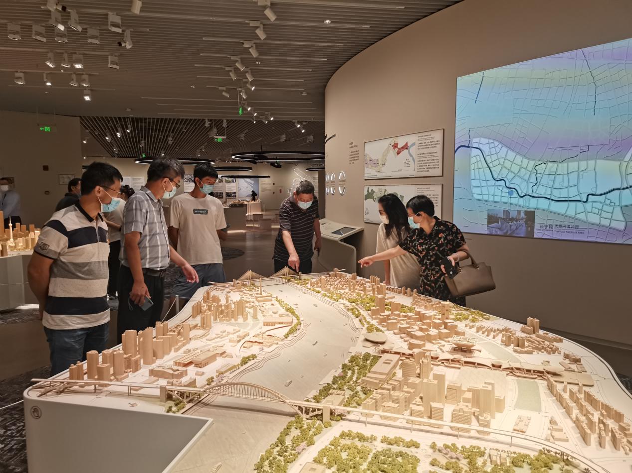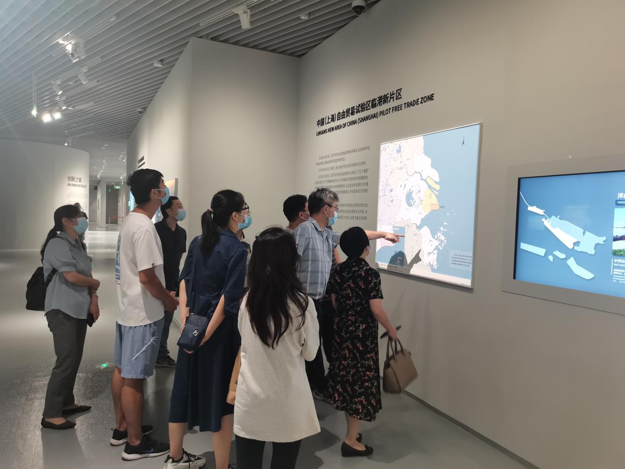 大家依次进入序厅、人文之城、创新之城、生态之城4个主题展厅参观,在体验一系列如VR、AR、全息影像、8K大屏、5D数字化城市沙盘等高科技手段的展现过程中,更加全面、真切、生动地了解了上海城市建设的过去、现在和未来。尤其是在中国(上海)自由贸易区,特别是临港新片区的相关展陈前驻足讨论,回顾三年来新片区的变化,憧憬美好的未来。