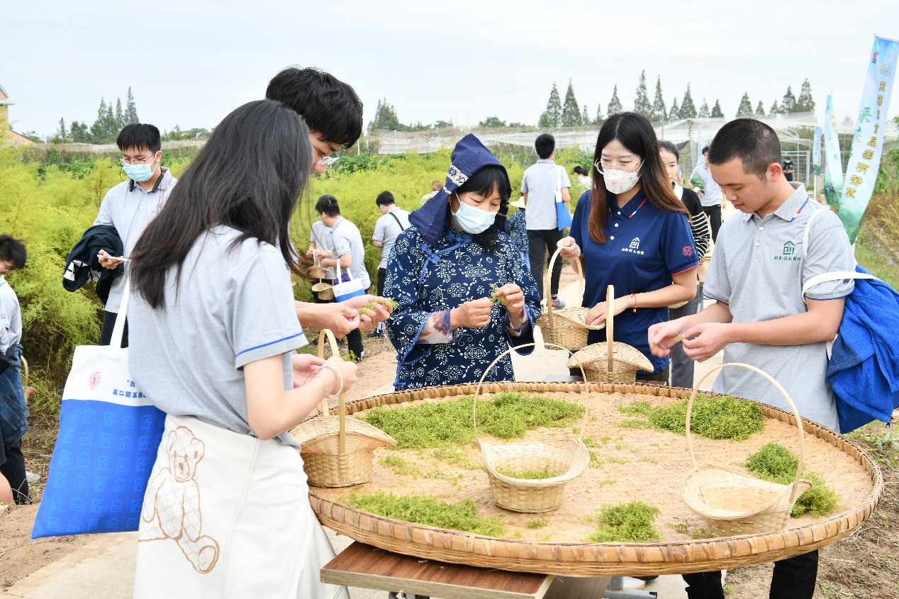 在玉海棠生态农业科技园,同学们开展了苦草茶的采摘和炒茶体验,参观了苦草产品车间。通过劳动和亲身体验,见证了崇明苦草从野草到黄金草的锐变,感受到创新的魅力、创业的艰辛。