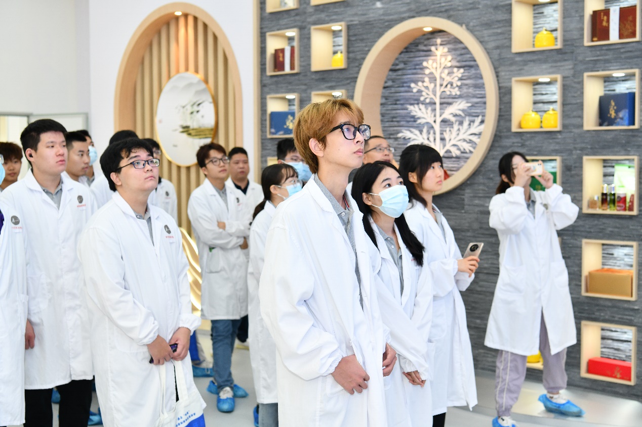 “500多年前的崇明县志就有记录崇明老百姓食用苦草煮鸡蛋除恶露促进妇女产后恢复的习俗,施大钟校友2017年返乡创业时就是从这个习俗中发现的商机。通过大量实验,发现了苦草的主要成分绿原酸,并通过萃取、提纯最后开发出苦草茶、保健品、护肤品,并衍生出苦草的劳育文化、创新创业育人文化,不仅挖掘出了苦草的商业价值,也带动了玉海棠的文旅产业。如今的玉海棠生态科技园区正在朝着两山理论实践区、乡村振兴示范点、共同富裕试验田努力!”在苦草产品车间,实训营的指导老师卿海龙给同学们做介绍。