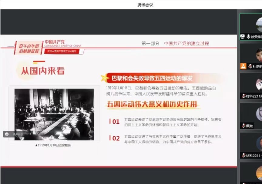 在党的二十大召开之际,为切实做好大一新生入党启蒙教育,帮助大一新生端正入党动机,材料学院直属党支部于2022年9月28日晚六点半通过腾讯会议举行了2022级材料学院新生第一堂党课及入党启蒙教育。本次新生党课由材料学院直属党支部书记徐荣华老师主讲,学院组织员主持,全体2022级新生参加。