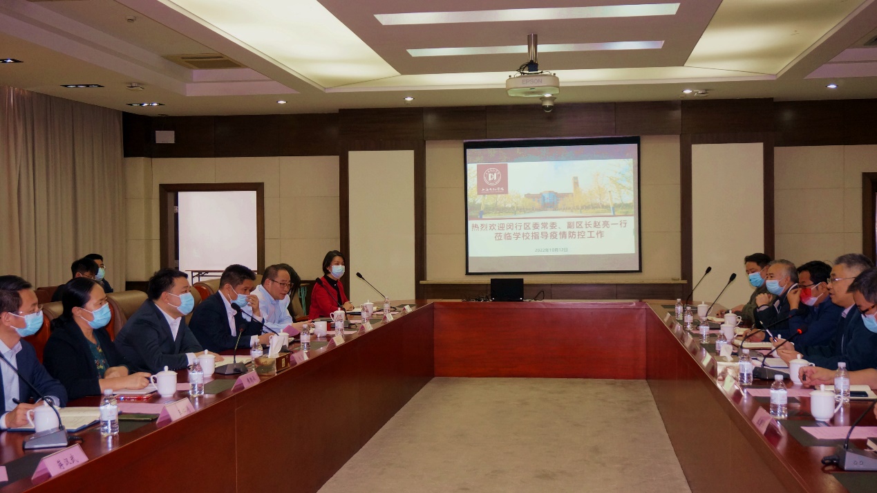10月12日,闵行区区委常委、副区长赵亮携区发改委、卫健委、疾控中心、教育局及江川路街道等有关部门负责人赴我校闵行校区督导疫情防控工作,副院长王志恒携相关部门负责人进行对接。