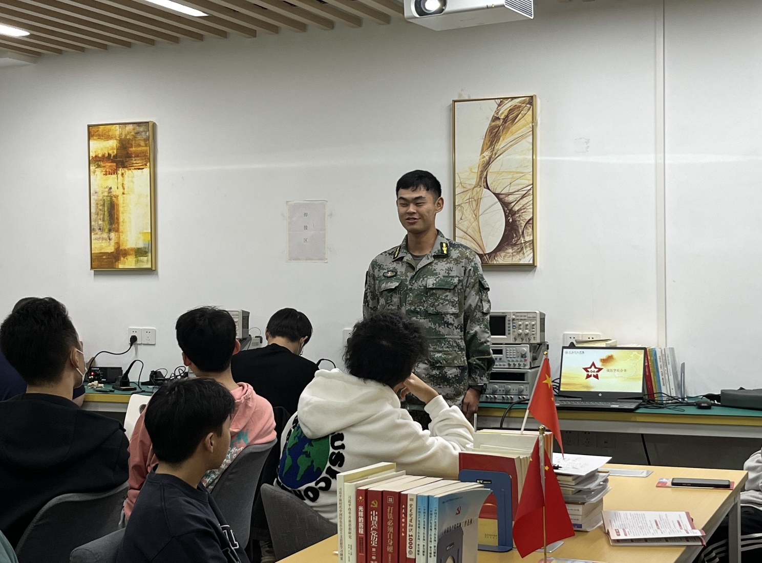 两位退伍同学边泉、杜志恒分别分享了他们的军营生活和心路历程。他们表示军队生活虽然很艰苦,但取得的收获却值得用一生去铭记。他们积极鼓励青年大学生参军入伍,将自己的理想和国家的需要紧密结合起来,到部队中成长和锻炼自己。一起传承红色基因,携笔从戎保家卫国,为祖国国防事业贡献一份自己的力量。