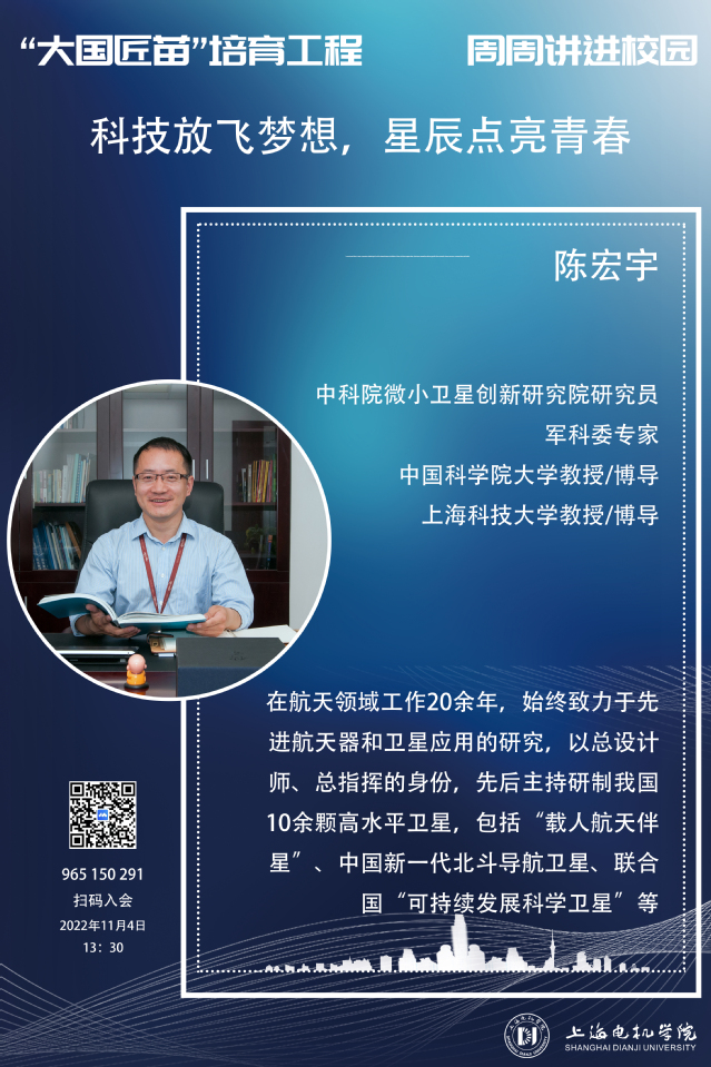 中科院微小卫星创新研究院研究员、军科委专家、中国科学院大学、上海科技大学教授/博导,在航天领域工作20余年,始终致力于先进航天器和卫星应用的研究,以总设计师、总指挥的身份,先后主持研制我国10余颗高水平卫星,包括“载人航天伴星”、中国新一代北斗导航卫星、联合国“可持续发展科学卫星”等。