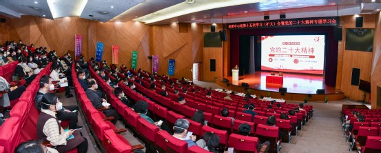 李儒新从党的二十大概况,深入学习领会党的二十大报告精神,实施科教兴国战略、强化现代化建设人才支撑等三个方面进行宣讲,系统阐释了党的二十大的历史定位、大会主题、重要意义、代表产生过程以及大会报告的核心要义等内容。