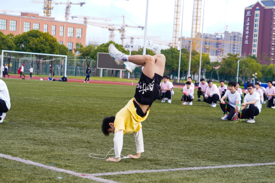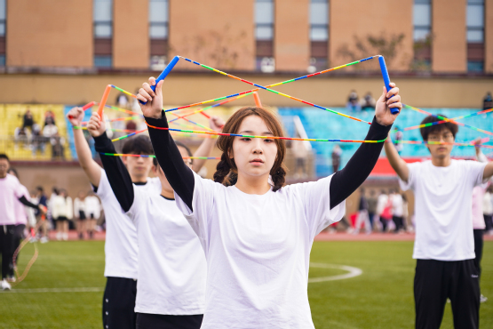 开幕式上,电子信息学院手势舞《一起向未来》、体育教学部花样跳绳《绳采飞扬》、电气学院健身达人秀《极限飞跃》、商学院舞蹈《cheer up》的精彩表演,获得师生观众们的阵阵喝彩。在经历了和往年不同的分时分年级返校的特殊情况以及线上线下交叉教学后,文体表演的同学们克服了种种困难,依旧呈现了良好的节目质量。