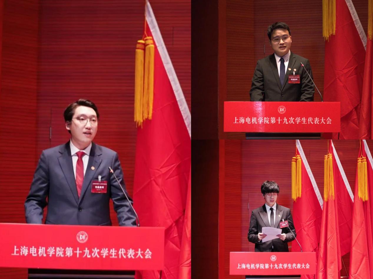 上海市学生联合会执行主席黄渤钦代表市学联向上海电机学院学生会所取得的优异成绩表示诚挚的祝贺。他表示,上海电机学院学生会本着“全心全意为同学服务”的宗旨,结合当下实际,充分发挥了纽带作用,不断向前发展,践行服务宗旨,凝聚青春力量,在沪上高校学生组织中发挥着重要的作用。上海电机学院第十八届学生会主席团成员胡涛、章钰杰分别汇报《上海电机学院第十八届学生会工作报告》和《上海电机学院第十九次学生代表大会提案工作报告》。