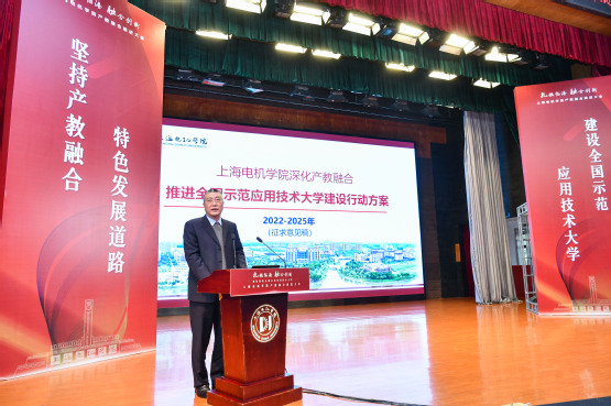 副院长杨万枫代表学校正式发布《上海电机学院深化产教融合推进全国示范应用技术大学建设行动方案》。根据方案,学校将立足临港、服务上海、面向长三角,坚持产教融合特色发展道路,实施“加强产教融合体制机制创新”等18项重点任务,积极推动人才培养模式改革、校企科技协同创新、双师型师资队伍建设;创新优化现代产业学院、新型研发机构和产业师资队伍建设路径;探索建立高校与政府、行业、企业等多元主体深度融合的协同发展机制,力争通过3年建设,使学校“最产教融合”的内涵更丰富、特色更鲜明,基本建成上海产教融合示范高校并加速推进全国示范应用技术大学建设,为打造临港产教融合示范区贡献电机智慧。