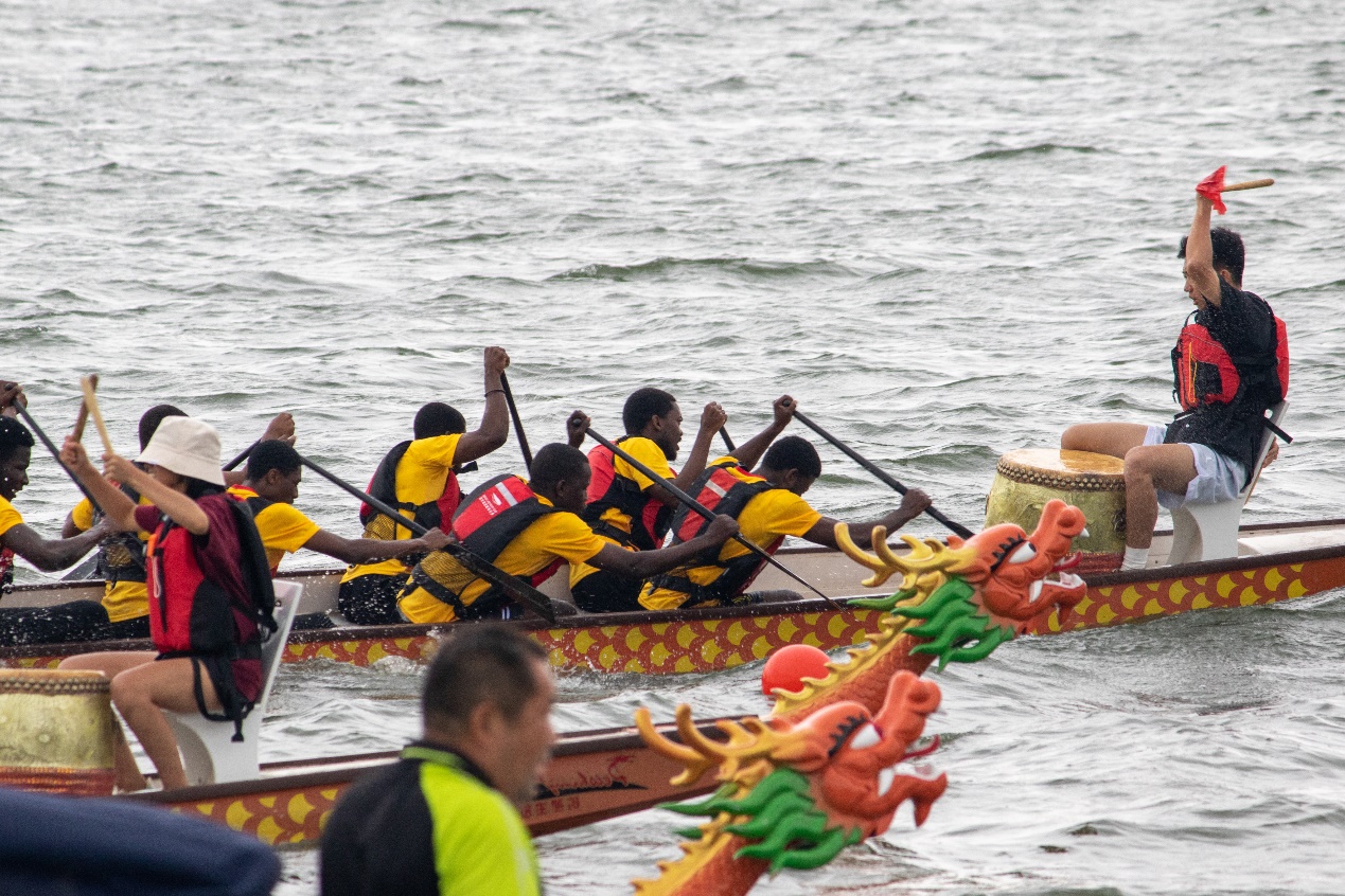 在比赛时,尽管水流湍急,但我校国际学生龙舟代表队克服困难险阻,拼搏进取,充分展现了电机学子的精神风貌,最终获得小组第一,比赛第四的好成绩。