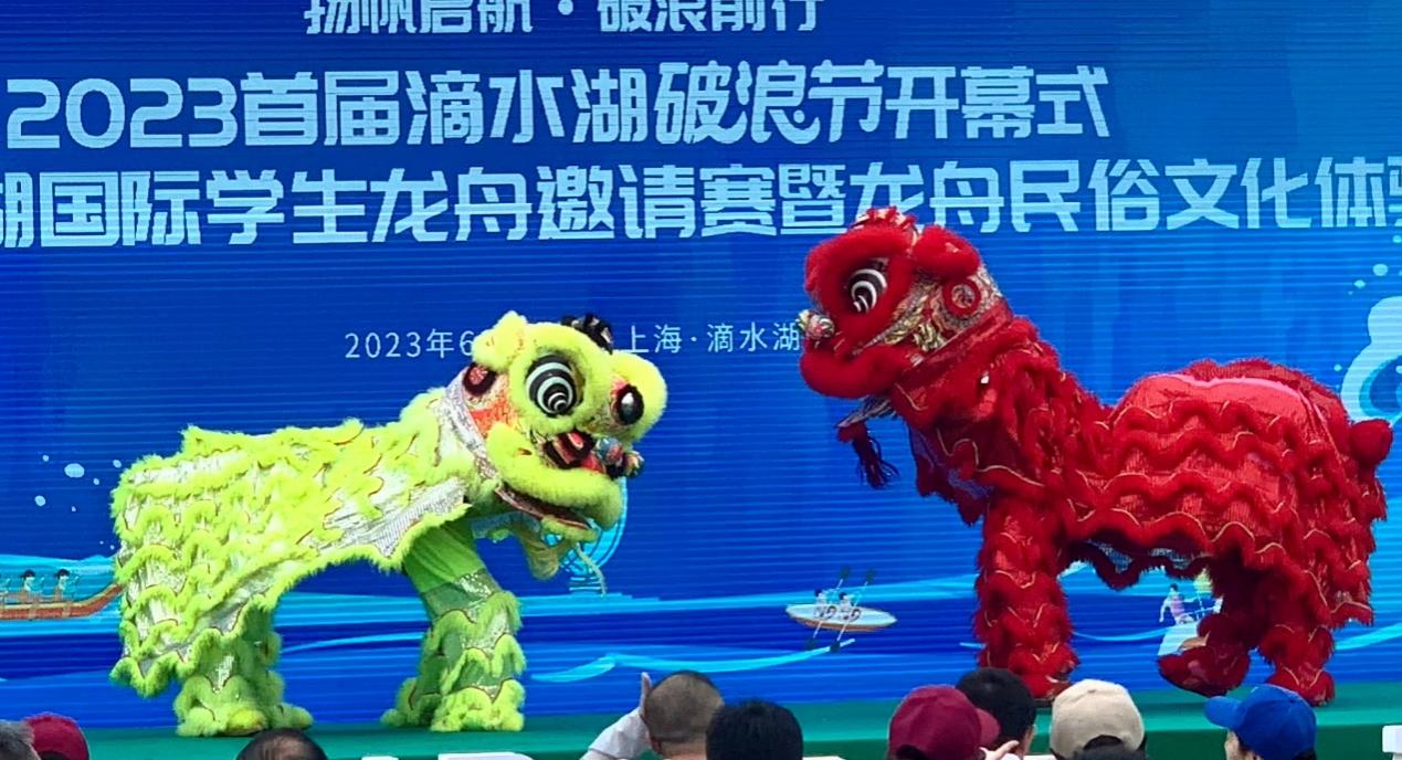 6月11日,2023首届滴水湖破浪节开幕式,2023年滴水湖国际学生龙舟邀请赛暨龙舟民俗文化体验日活动在上海临港滴水湖举行。欧美同学会上海电机学院分会秘书长苏庆刚等出席开幕式。