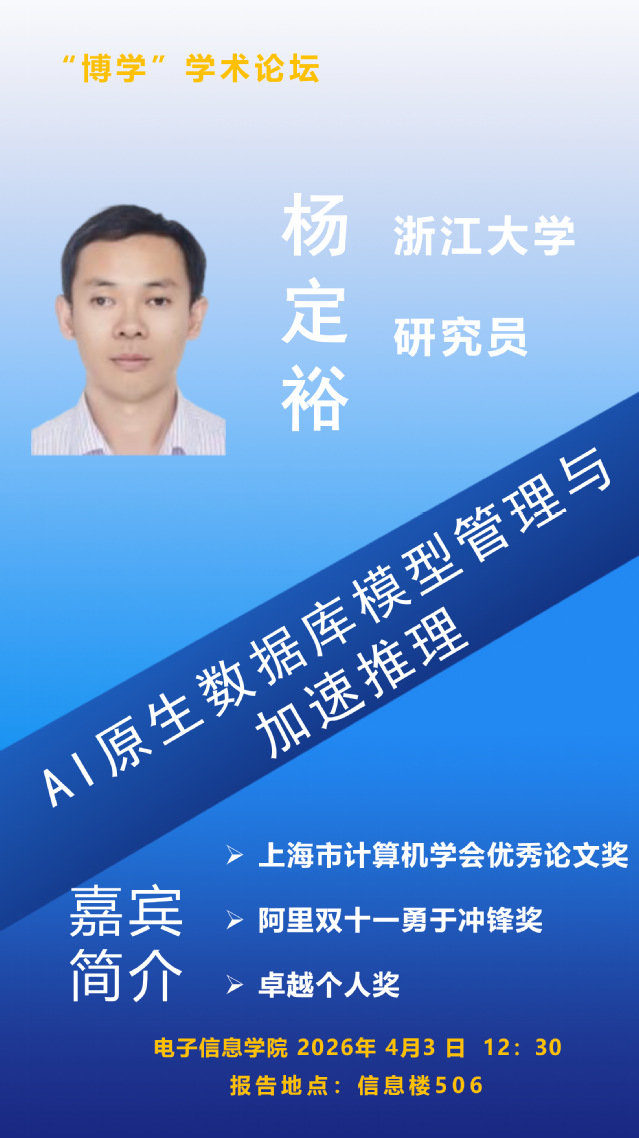 杨定裕,浙江大学研究员,CCF数据库&协同计算专委执行委员,博士毕业于上海交通大学,研究方向包括AI +DB,大模型向量检索、软硬结合性能优化与资源调度等。曾就职于上海电机学院、阿里巴巴集团等。在 CCF 推荐会议和期刊上发表论文60余篇,包含ASPLOS、PVLDB、SIGMOD、ASPLOS、WWW、ASE、VLDB Journal、ICPP、TPDS等,主持了国家自然科学青年基金、CCF-华为胡杨林基金数据库专项、CCF-蚂蚁软硬协同基金等攻关项目,获得阿里双十一勇于冲锋奖、卓越个人奖、上海市计算机学会优秀论文奖等。