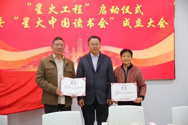 “中国好人”忻元华滕崇夫妇来校与大学生开展座谈交流2025年12月12日在学校产教融合大楼205会议室,马克思主义学院举行“星火工程”启动仪式暨星火中国读书会成立大会,“中国好人”忻元华与“宁波好人”滕崇夫妇受邀共同出席仪式,王宏志副校长为忻元华和滕崇夫妇颁发星火中国读书会兼职指导教师聘书,马克思主义学院院长刘炳辉主持活动,马院全体教师和校内外嘉宾及学生七十余人出席了活动。忻元华和滕崇两位年届八旬的老夫妇堪称银发支教界的“神仙眷侣”,他们跨越七省区、持续十年的支教故事被央视等主流媒体广泛报道。王宏志副校长对两位老人专程从宁波赶赴上海电机学院传经送宝表示真诚感谢,欢迎二老今后常来电机学院指导做客,也勉励师生们向两位老前辈学习,学有所成服务社会。忻元华和滕崇夫妇听闻电机马院成立星火中国读书会,帮助指导大学生开展经典阅读和社会实践活动,对此十分认可和推崇,此番专程赶来支持,并受邀为读书会揭牌。“尽管我身体有这样那样的问题和不适,但我有专业技能,老了也能服务社会!所以,我觉得,革命人永远是年轻!”今年80岁的忻元华精神矍铄,话音刚落便赢得全场掌声。他的支教初心始于2015年的一次偶然——69岁